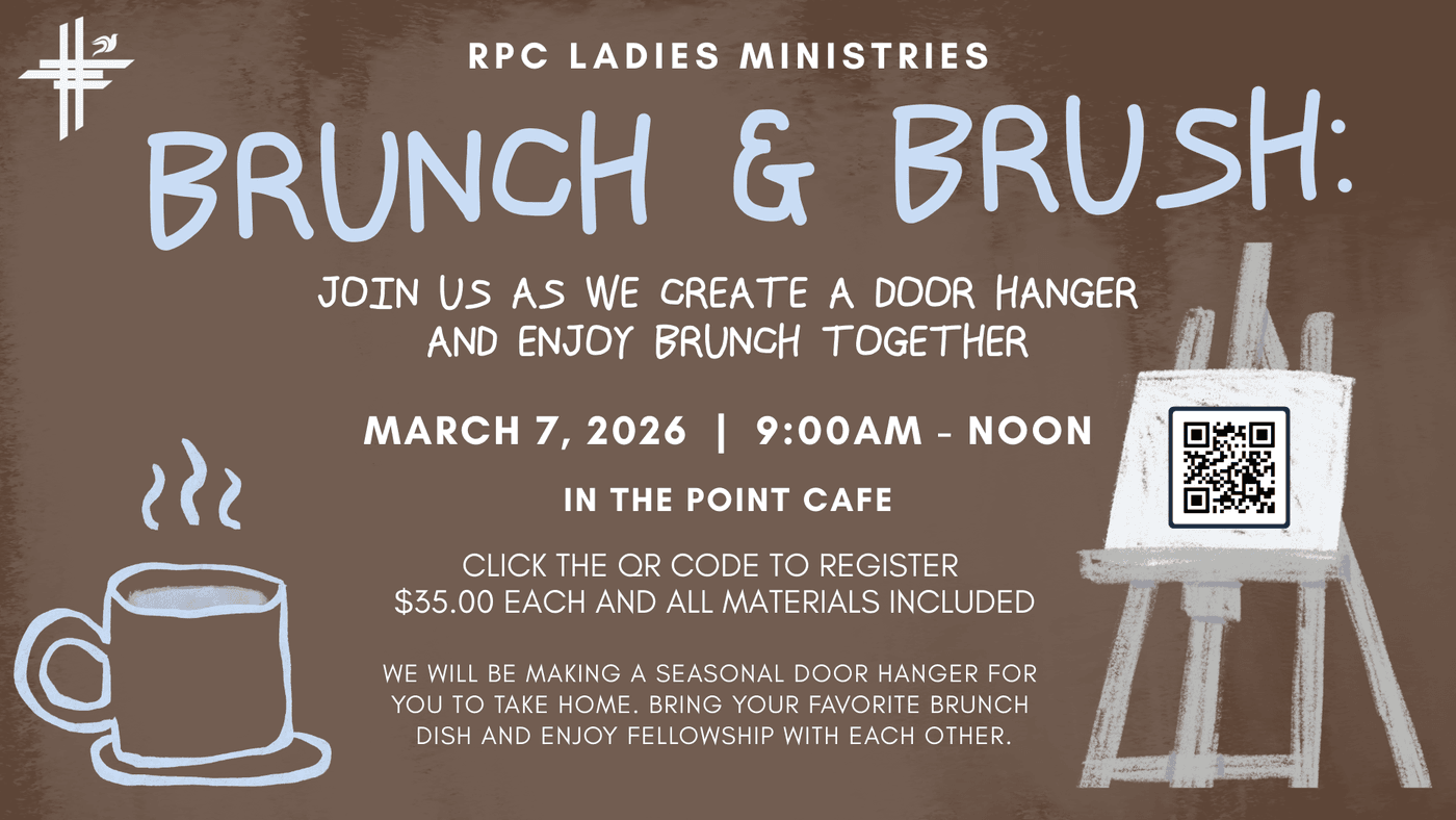 Ladies, join us as we create a door hanger and enjoy brunch together! Cost is $35.00 each and includes all materials. Bring your favorite brunch dish and enjoy fellowship with each other.